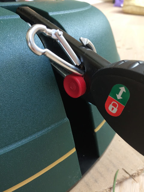 Since the lever only needs to be pushed up for the claws/posts to open, thereby possibly having your tree fall topple over onto your floors, I read many review on Amazon that suggested putting something in the hole to make sure the locking mechanism doesn't accidently side up. The way the posts could possibly open is of the red button slide up AND the lever was pushed up. The likelihood of that happening is pretty small, but I don't like a lot of risk so I just put this in to minimize any risk of that happening, no matter how slim the possibility! The instructions even suggest you do this with something that fits in the hole. That is so far my only criticism on this stand. Since the instructions suggested this, it would have been nice to have a metal rod or something that was made to fill that area to physically block the lock. That way, you have everything you need rather than going out to fashion one yourself.